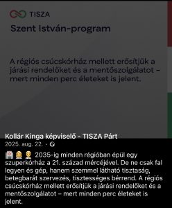 UgyanerrĆl Ărt Facebook oldalĂĄn KollĂĄr Kinga tiszĂĄs EP kĂ©pviselĆ is.